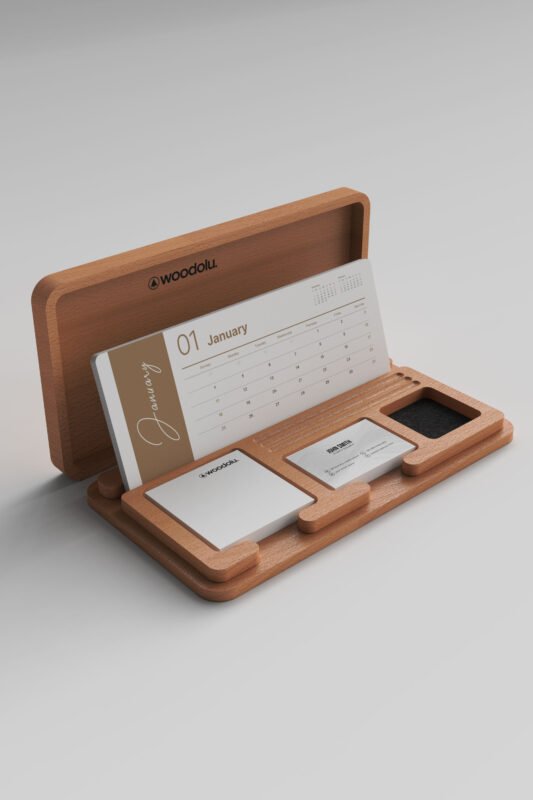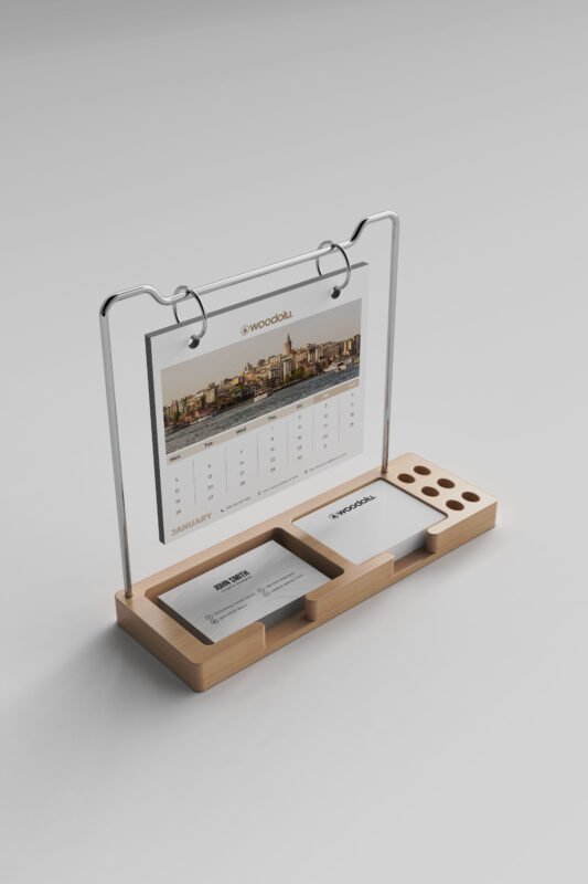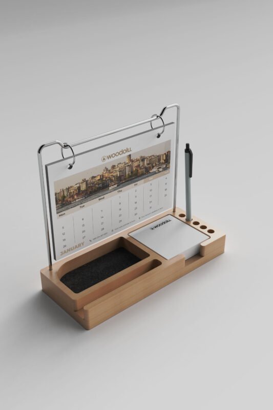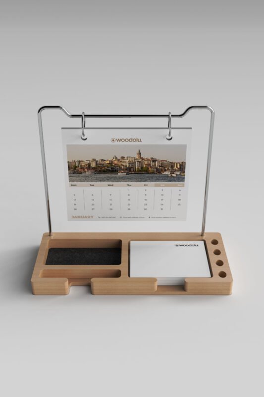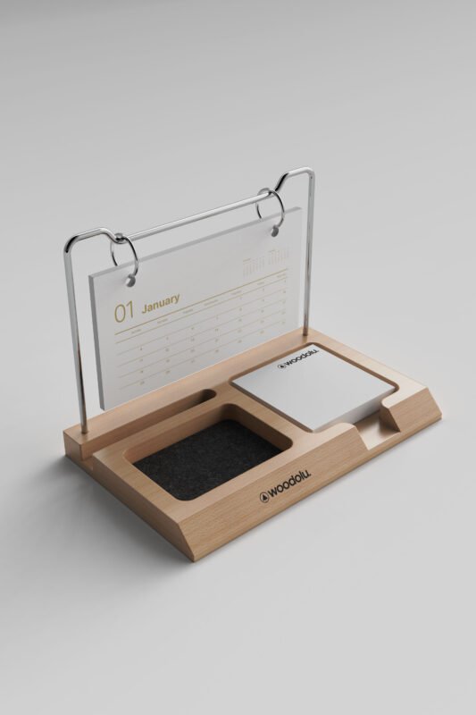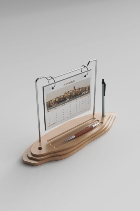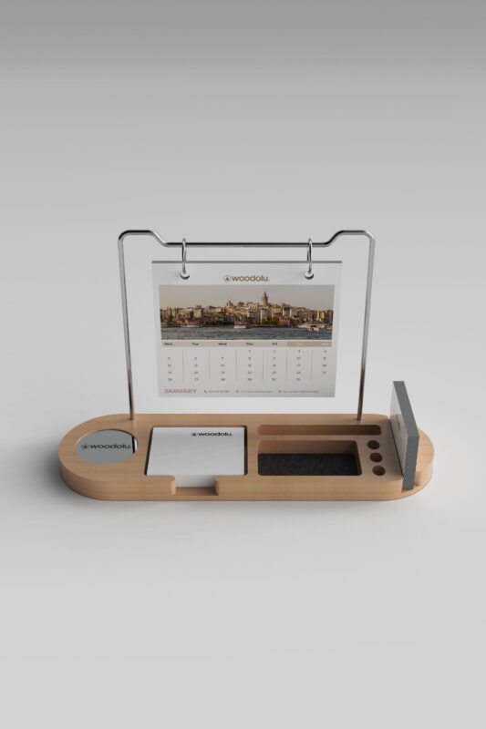 Doğal ahşabın sıcaklığını modern tasarımla buluşturan, şık ve işlevsel masa takvimleri.